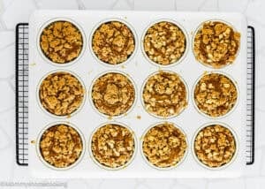 Yes, for mini muffins, bake for 12-14 total minutes at 350° F (180° C).) Allow the muffins to cool for 5 minutes in the muffin pan, then transfer to a wire rack to continue cooling.