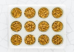 - Sprinkle crumb topping evenly over each muffin.