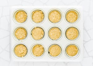 - Spoon the batter evenly into the muffin liners, filling each one all the way to the top.
