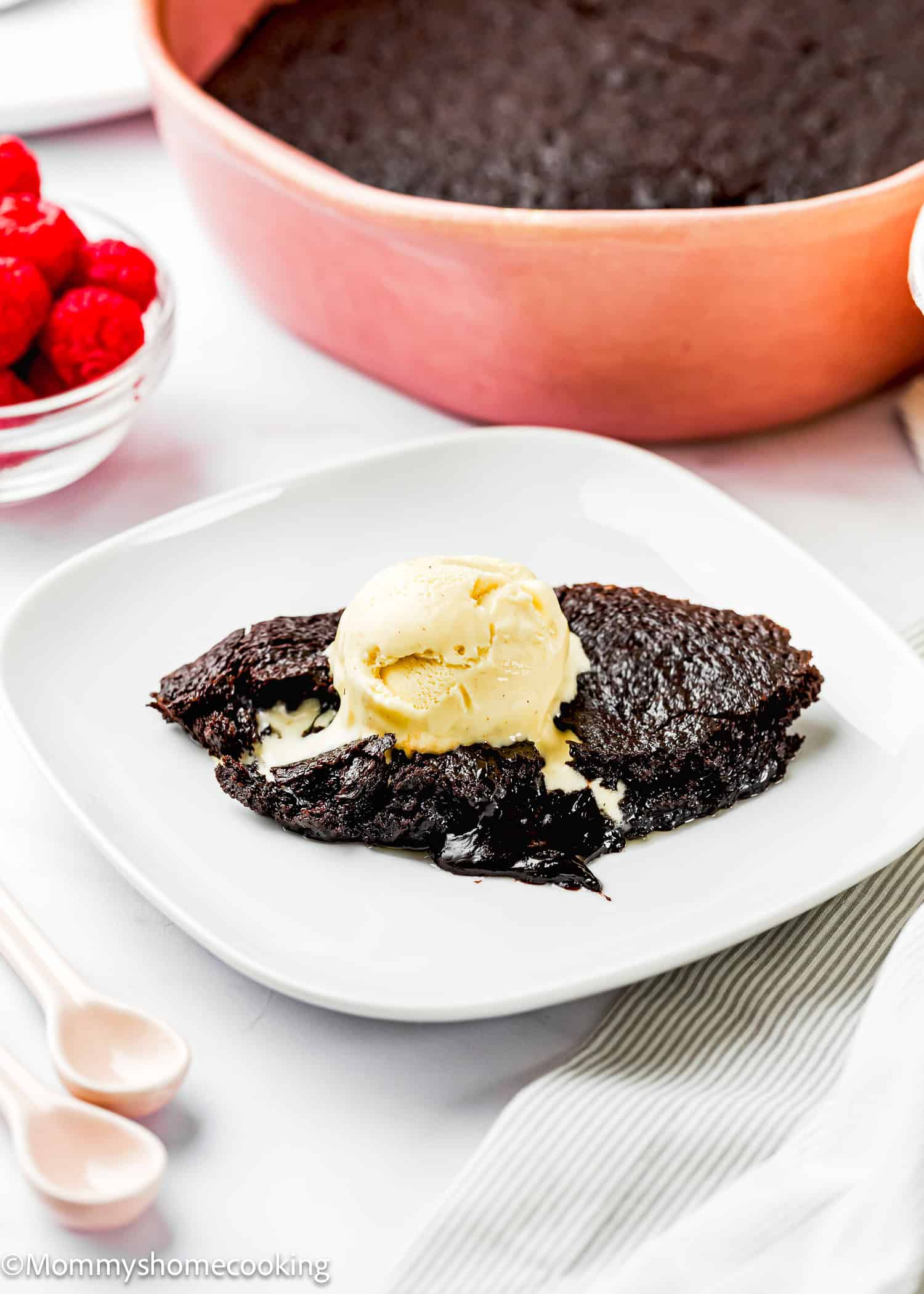 It’s soft in the center, almost molten, and meant to be scooped with a spoon. And even though there are no eggs, no one ever notices—what they do notice is how chocolatey and satisfying it is. As an allergy mom who’s been cooking egg-free for over 12 years, I love having desserts like this in my back pocket. It’s the kind of recipe I can serve confidently, knowing everyone at the table can safely share it—no stress, no explanations, just really good food.