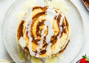 I love making these Eggless Cinnamon Roll Pancakes on slow weekends, holiday mornings, or anytime we want breakfast to feel a little special. The cream cheese drizzle is optional—but let’s be real, it’s what makes them feel like a cinnamon roll in pancake form. Watching my kids—and now my grandson—light up when these hit the table never gets old. These egg-free pancakes deliver all the cozy vibes of a classic cinnamon roll—without yeast, without eggs, and without spending all morning cooking. They’re simple, comforting, and honestly just happy food.