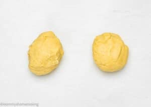 - Divide the dough into two equal pieces.