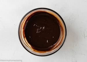 - Stir slowly with a spoon or rubber spatula until the chocolate melts and the mixture becomes smooth and glossy. Let it cool until thickened but still pourable—about 30 minutes depending on room temperature. Do not refrigerate or it will lose its shine.