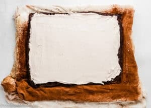 - Then, spread the whipped cream filling evenly over the surface, leaving a 1/2-inch border.